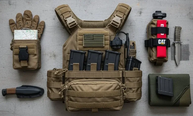 In a plate carrier setup, your medical gear is the most important non-ballistic component. Your IFAK must be reachable with both hands. If your dominant arm is injured, you must still be able to reach your tourniquet and pressure dressings. Many operators prefer “danglers” or roll-out kits mounted at the bottom of the front plate bag for this reason.